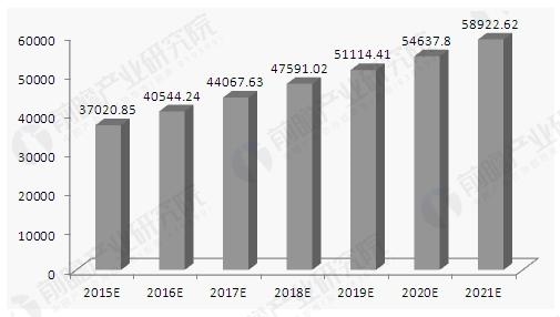 2016-2021年精細化工行業工業總產值預測(單位:億元)